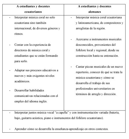 Gracias al apoyo de la Embajada Alemana en Ecuador y de las instituciones que forman parte de su red cultural, la visita ilustre de estos estudiantes y docentes de Alemania, que implicó un intenso trabajo a lo largo de una semana completa, culminó con un concierto musical que se dividió en tres momentos: