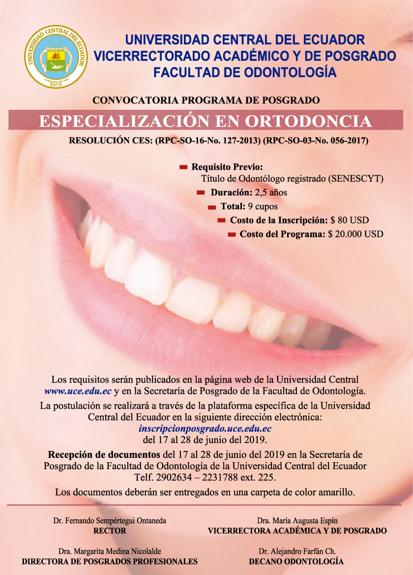 En la Facultad de Odontología de la Universidad Central del Ecuador, UCE, se llevó a cabo el primer concurso de fotografía denominado “Odontología desde otra perspectiva”. En el evento de premiación realizado el 05 de junio de 2019 se expusieron 10 imágenes seleccionadas del total de 36 candidatos participantes entre docentes, estudiantes y empleados.