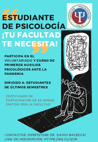 TU FACULTAD Y TU COMUNIDAD TE NECESITA VOLUNTARIADO Y CURSO DE PRIMEROS DE AUXILIOS PSICOLÓGICOS ANTE LA PANDEMIA