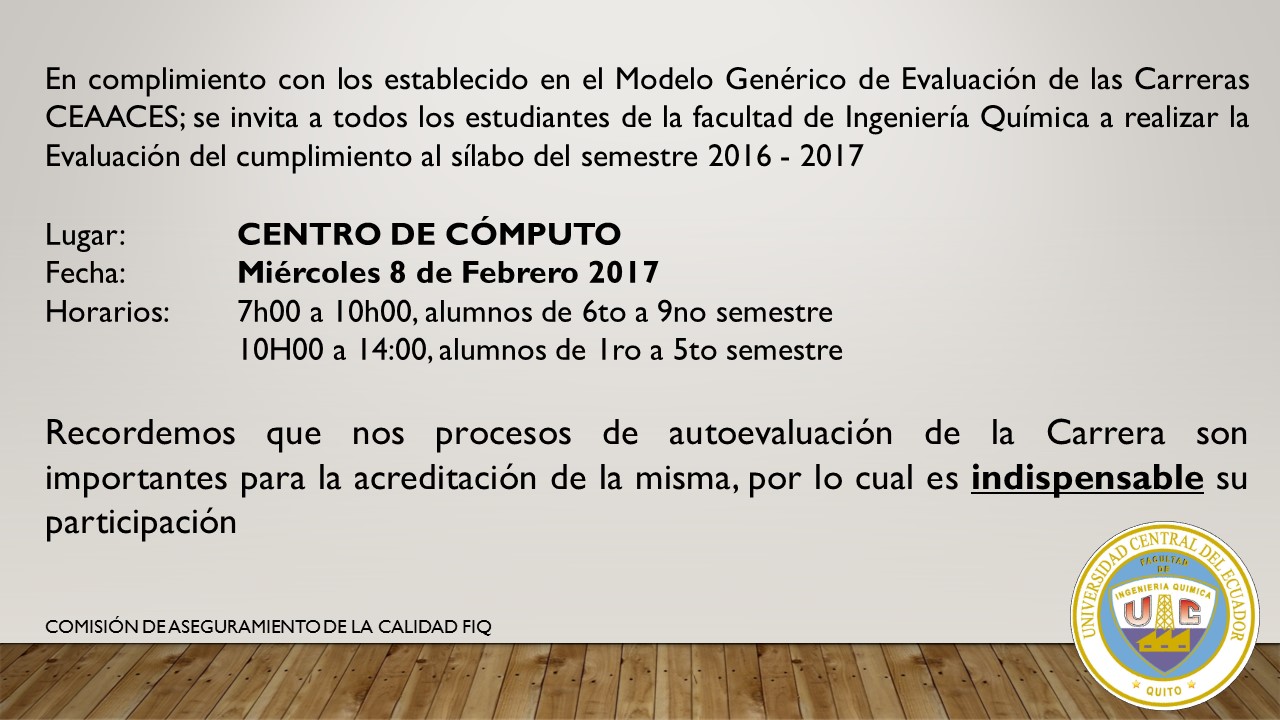 février 07, 2017 |EVALUACIÓN AL CUMPLIMIENTO AL SÍLABO DEL SEMESTRE 2016 - 2017