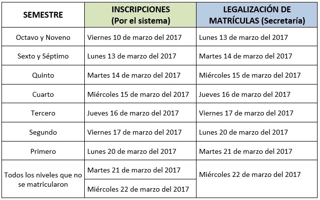 március 27, 2017 |HORARIOS POR SEMESTRE Y PARALELO AULAS 2017 - 2017