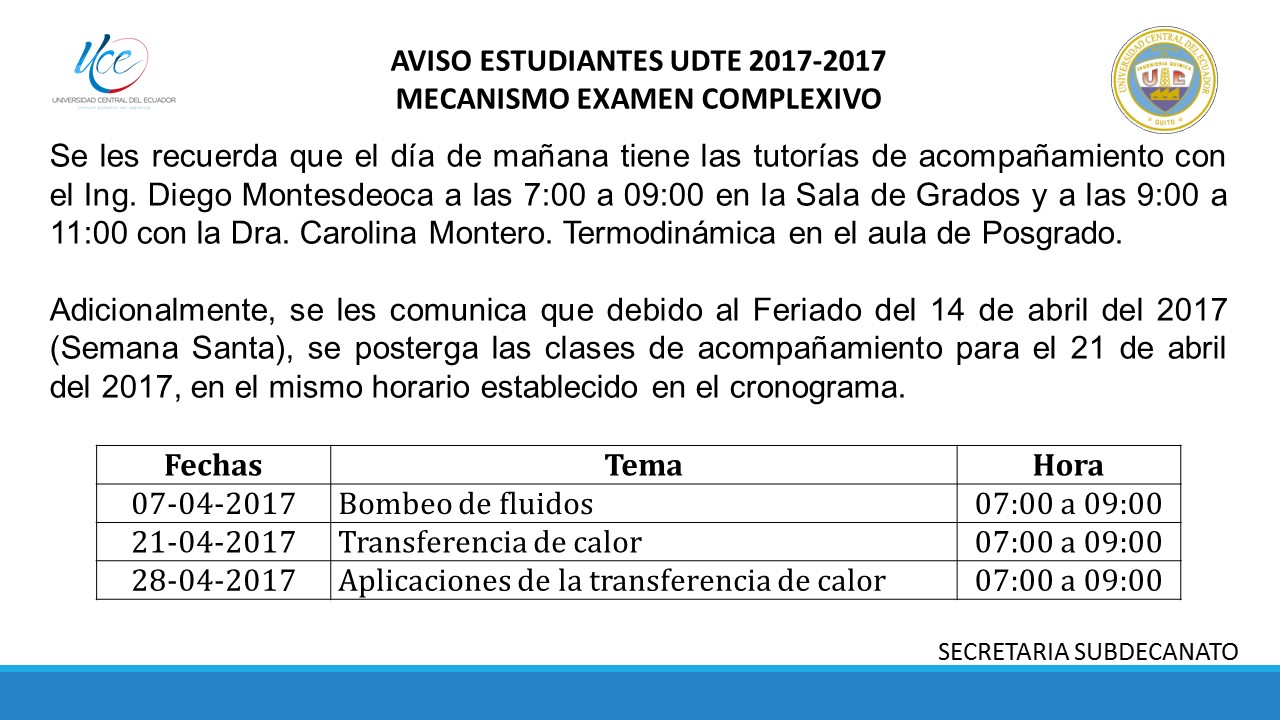 március 06, 2017 |UNIDAD DE TITULACIÓN 2017 - 2017 FACULTAD INGENIERÍA QUÍMICA