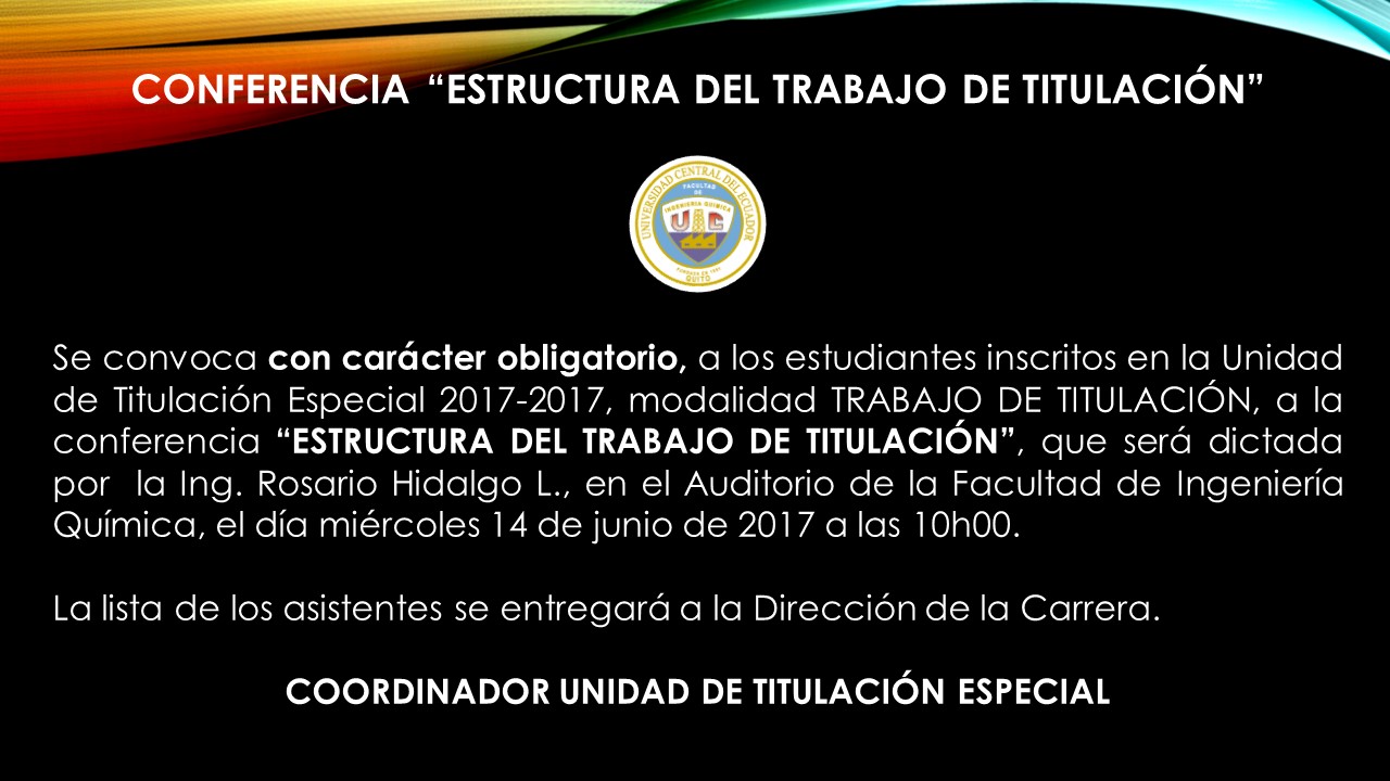 Conferencia "Estructura del trabajo de titulación", dictado el día 14 de junio de 2017 (clic descarga)
